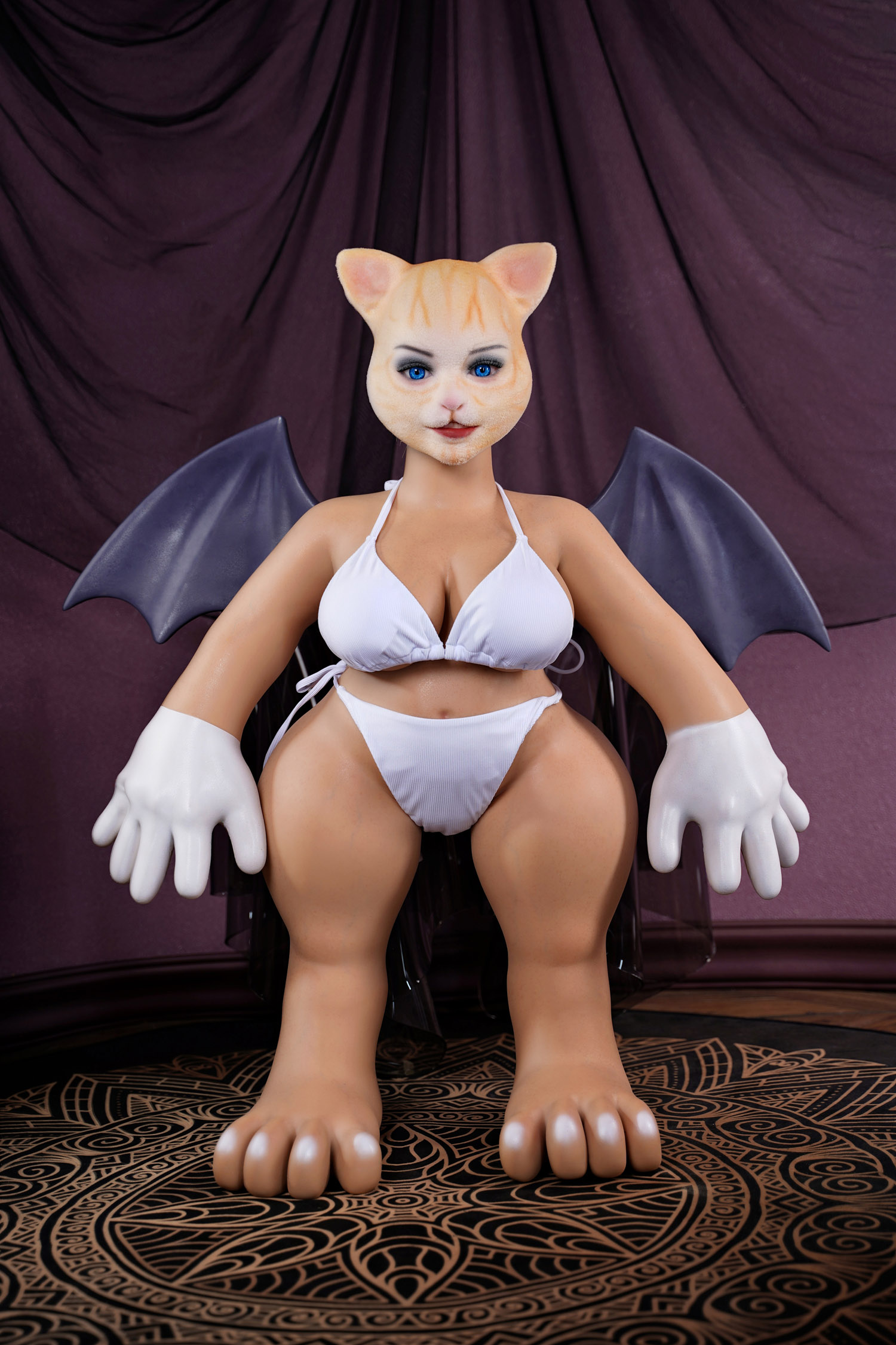Cattie doll 100CM D #SZ2 is a real furry face + normal silicone doll body, #SZ2 has the cute face with movable jaw, fixed teeth & tongue, for a real life oral sex function. Wings are removable & built with skeleton, if you dont need the wings then its fine, it is available to have the doll 100CM D without the wings! Then the furry cat doll Cattie has quite soft jelly filled boobs and jelly filled ass, good love hole placement for the best realistic vaginal sex and anal sex.